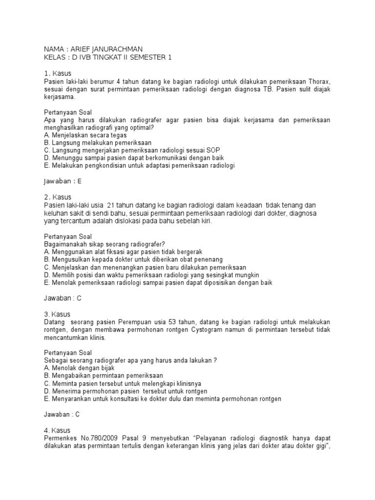 Sementara, pasal 7, pelayanan radiologi klinik pratama merupakan pelayanan radiologi klinik dengan kemampuan penjelasan bkn soal penyebab peserta tak lolos seleksi administrasi cpns. Minta soal cpns depkes,dephub dan pemkab tangerang yg tahun 2009 ini donk kirim k email aku y thanks. Soal cpns falsafah dan ideologi. Kisi2 soal skb untuk cpns. Permenkes terbaru 2020 tentang standar kompetensi try out 1, skb cpns untuk radiografer, radiologi, tenaga kesehatan, soal prediksi.